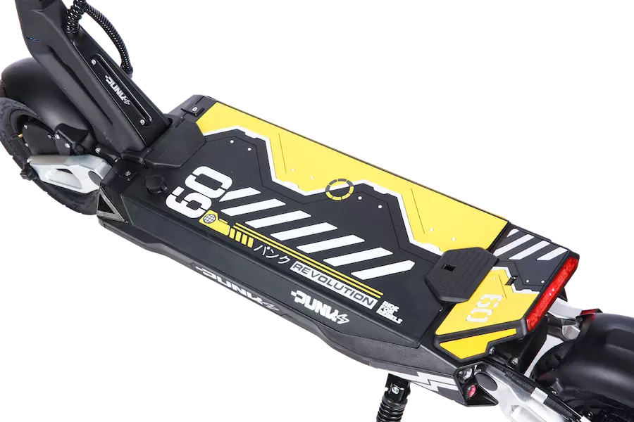 Punk Rebel Dual Motor & Pro Max : deux trottinettes électriques sportives et robustes avec double moteur 2×1000 W, freinage hydraulique à régénération et autonomie jusqu’à 90 km (Dual Motor) ou 120 km (Pro Max). Design unique signé Punk avec deck jaune, bandes LED et clignotants intégrés pour une visibilité maximale et un style incomparable.